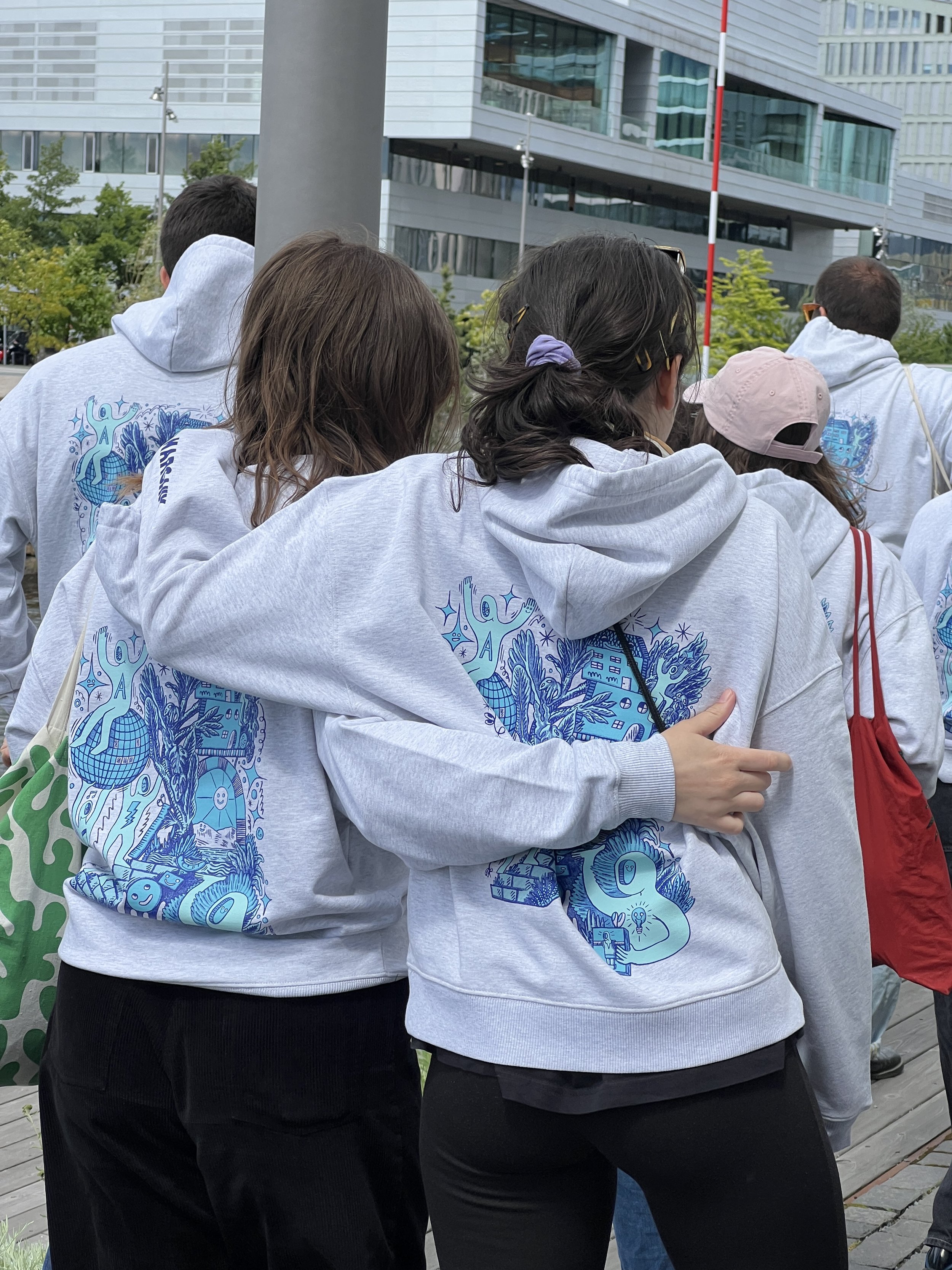 Cette création a été déclinée en sweat-shirts pour toute l’équipe, en tote bags, ainsi qu’en affiches dans nos locaux.