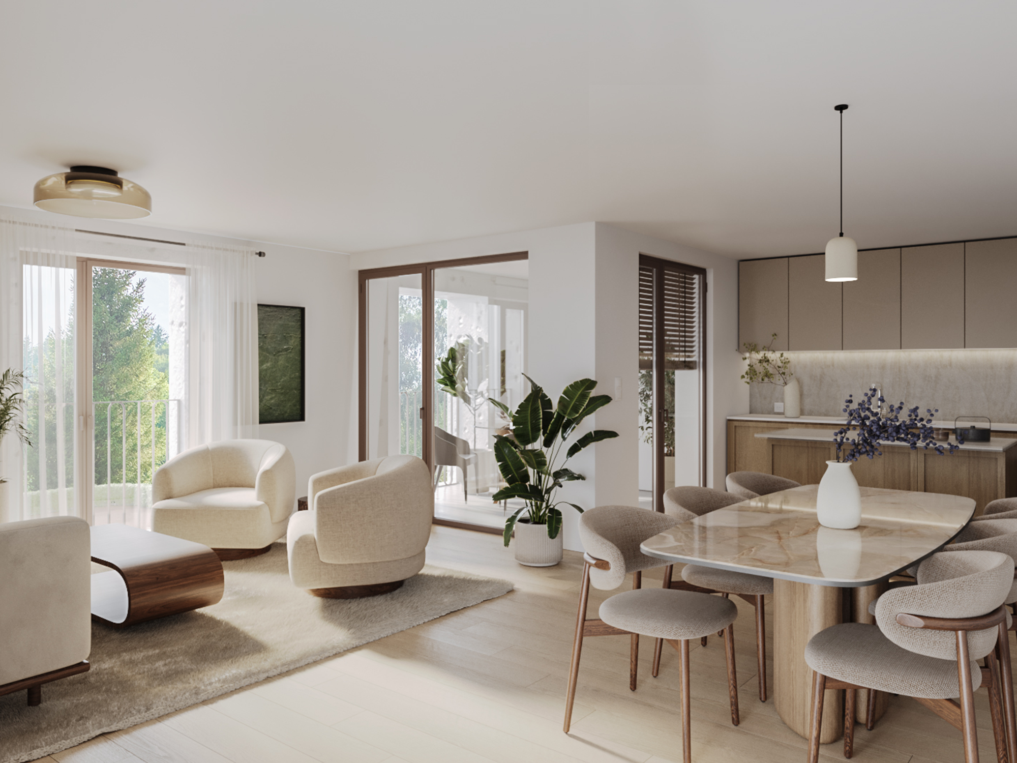 Bénéficiant d’un emplacement privilégié, au calme de Prilly tout en restant à deux pas de Lausanne et de ses atouts urbains, notre projet à la Buissonnière offre un cadre de vie idéal, alliant tranquillité et dynamisme, adapté aussi bien aux jeunes actifs, qu’aux familles et aux aînés. Pour répondre à cette diversité, nous avons imaginé un large éventail de typologies, du studio au 4,5 pièces. Les plus petits logements profitent d’une double orientation, tandis que les plus grands, traversants, offrent une triple orientation et une luminosité exceptionnelle. Tous disposent d’un espace extérieur, jardin, terrasse ou loggia, orienté sud ou ouest, pour prolonger les espaces de vie dans un cadre agréable et lumineux.