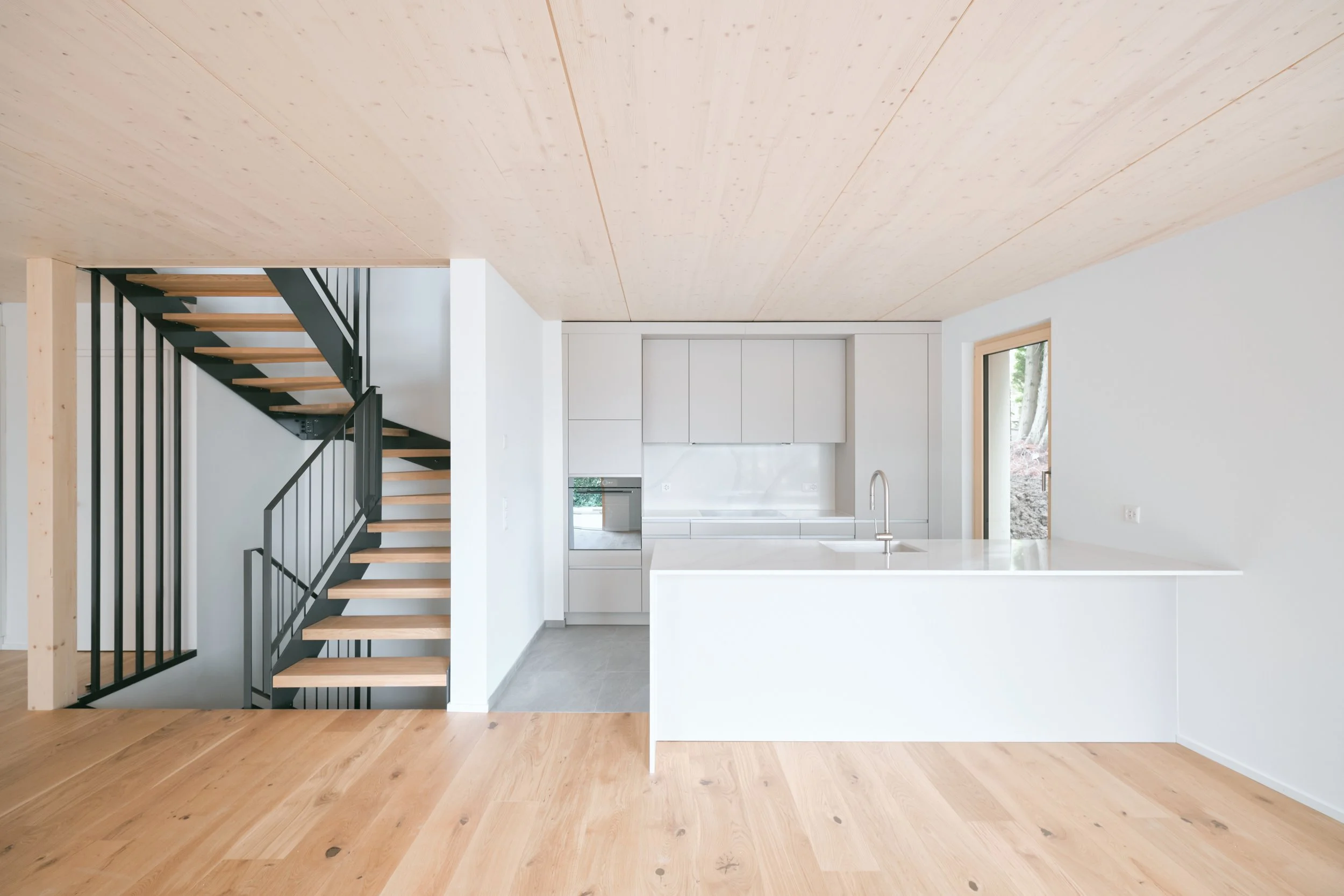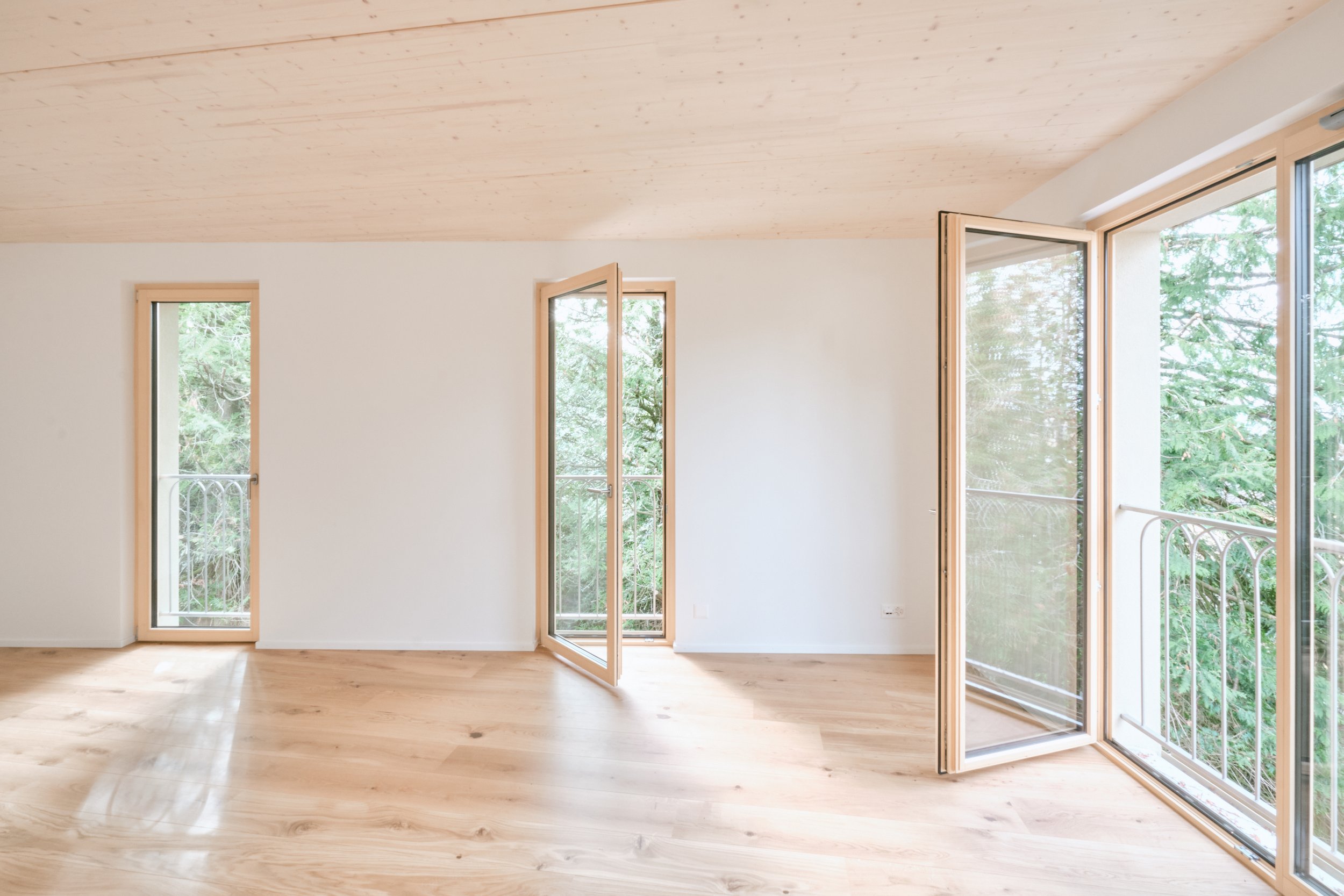 Ces villas ont été préférées à un immeuble de logement collectif dans le respect du contexte, un quartier à faible densité. Les façades, minérales, revêtent un crépi ligné aux couleurs sobres et chaleureuses qui différencient chaque villa. Un avant toit en bois protège la façade et lui donne beaucoup de caractère, tout comme les encadrements de fenêtre qui préservent les volets coulissants, les garde-corps arrondis et les menuiseries en bois. Enfin, de larges baies vitrées amènent beaucoup de lumière dans les pièces de vie.